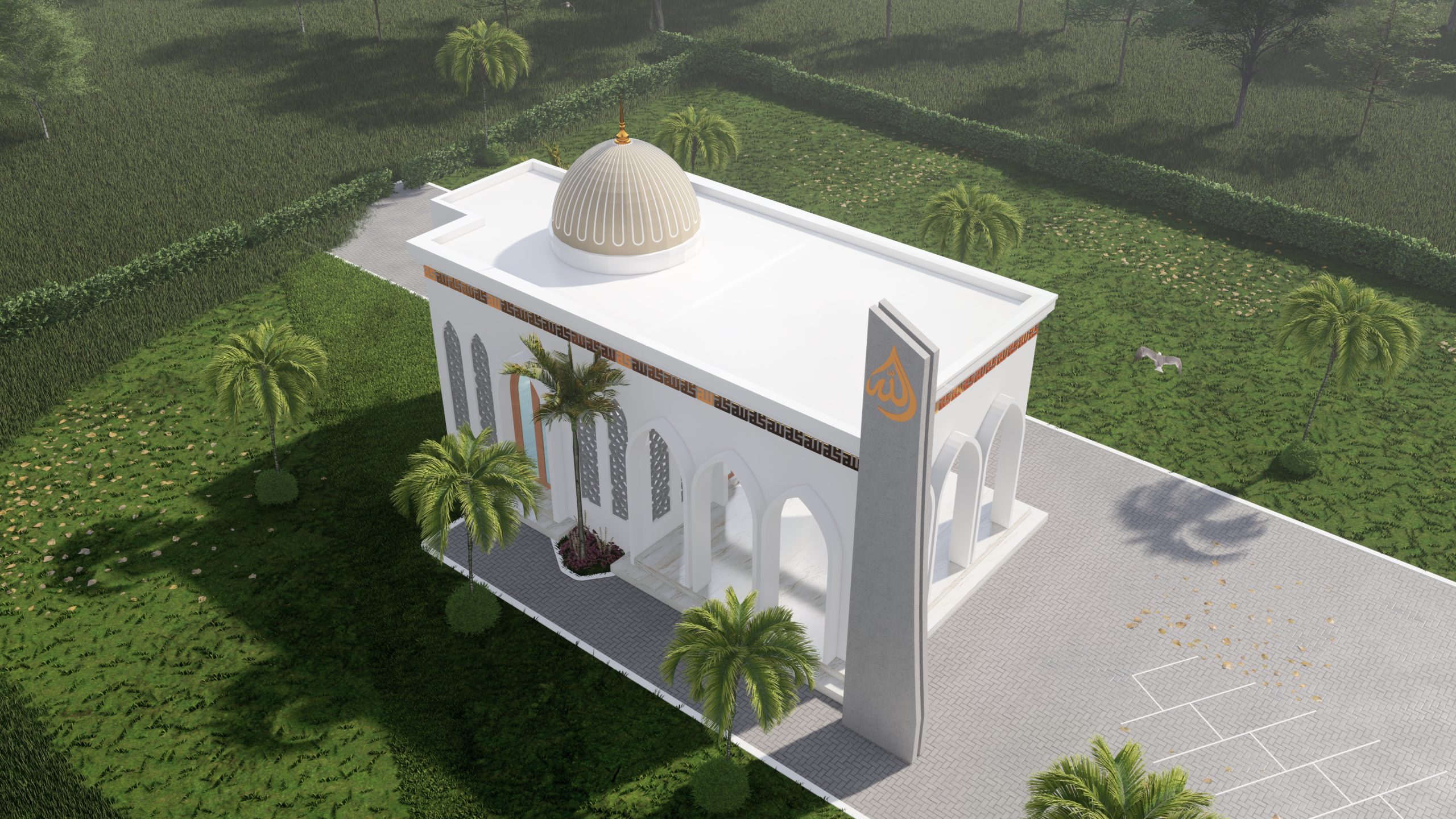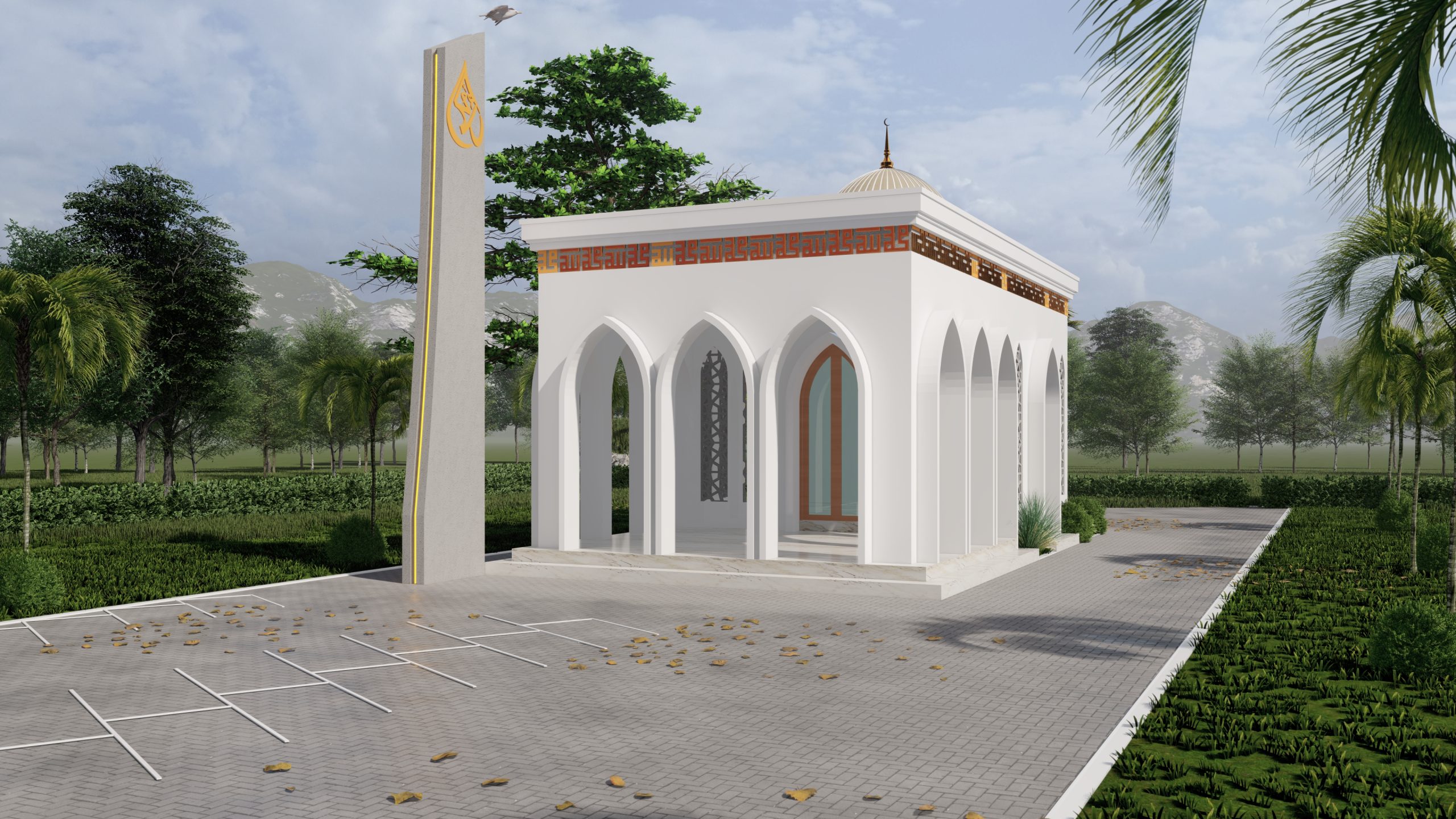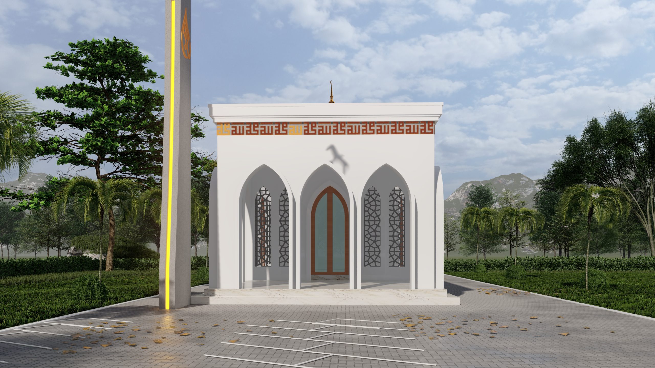 Masjid ini dirancang dengan presisi, memadukan kemegahan warisan Islam dengan sentuhan modern yang elegan. Lengkung runcing pada fasad dan pola mashrabiya menghadirkan kesan anggun, sementara kubah proporsional dan kaligrafi Kufi berlapis emas mempertegas kemuliaannya. Warna putih murni dipadu aksen emas dan marmer menciptakan suasana mewah nan teduh, menjadikan masjid ini bukan hanya tempat ibadah, tetapi juga simbol keindahan dan keabadian.
